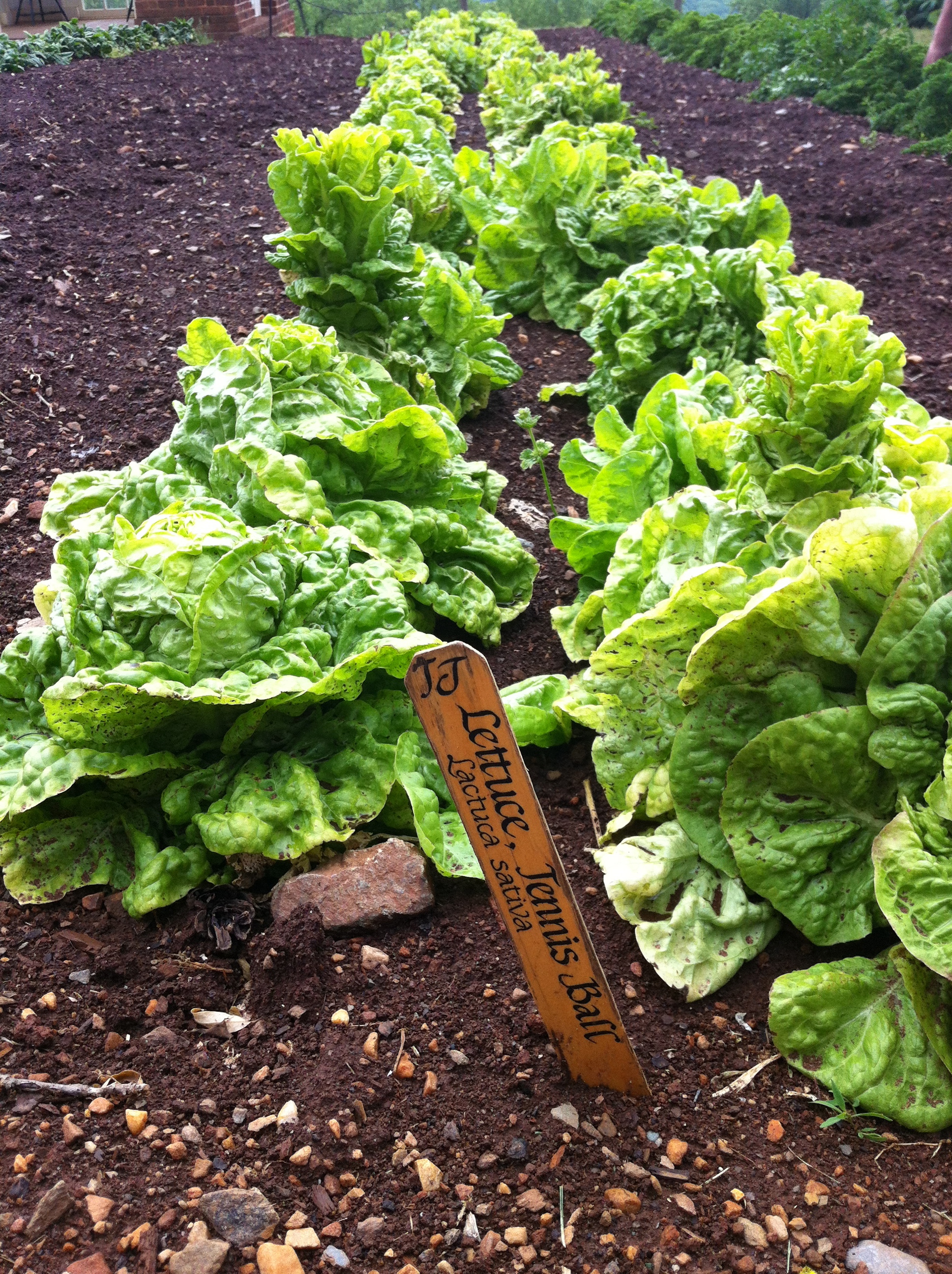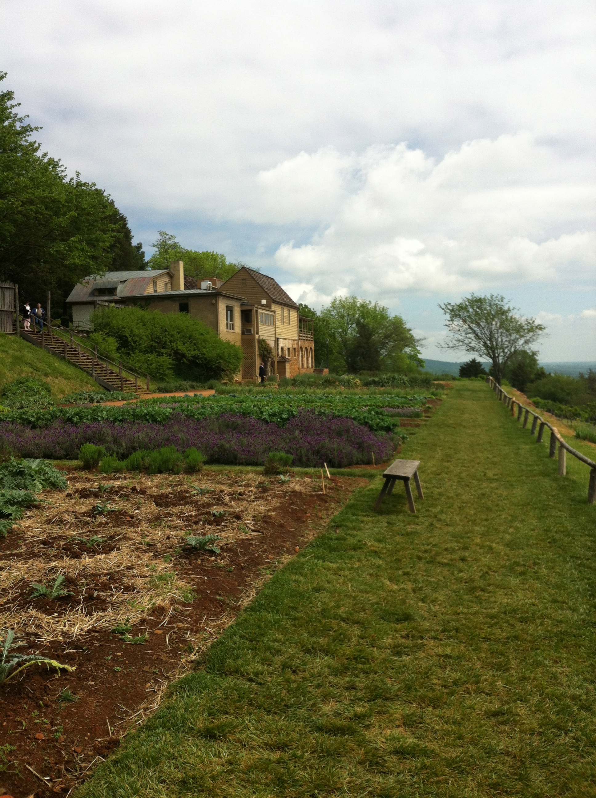 Over Jefferson’s fifty-six years at Monticello, the garden grew 330 varieties of 99 species of vegetables and herbs. Today’s garden is interpretative and planted more intensively with about 40 to 50 varieties of vegetables at a time in a pattern that a rototiller can maneuver around.