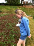 Across a dirt path from the sea kale, there is an abundance of radiant scotch kale. We harvest enough for salad for nine. Later that evening, we eat it raw with Brussels sprouts and almonds cured in lemon vinaigrette. The taste is truly revolutionary. Who knew kale could be so yummy.